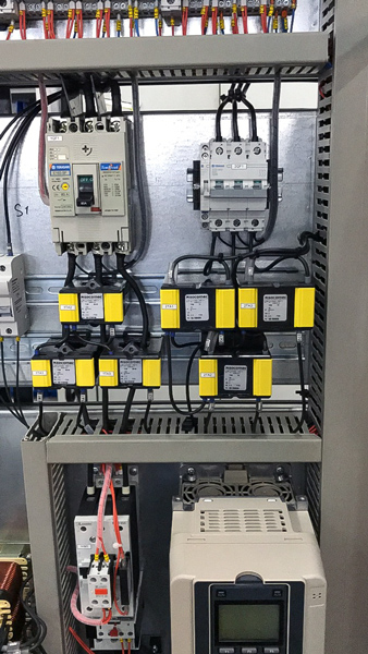 На кожен привід встановлений аналізатор мережі, вимірювач струму з перетворенням в сигнал 4-20 мА, захист від струму КЗ, перевантаження.