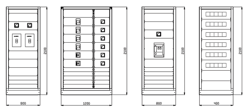 - Лінійна шафа зі стаціонарними уніфікованими модулями (з комутаційними апаратами стаціонарного, висувного, втичного виконання)