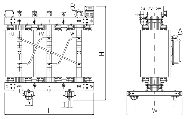 Потужність, кВА | 100 | 160 | 200 | 250 | 315 | 400 | 500 | 630 | 800 | 1000 | 1250 | 1600 | 2000 | 2500 | 3150 |