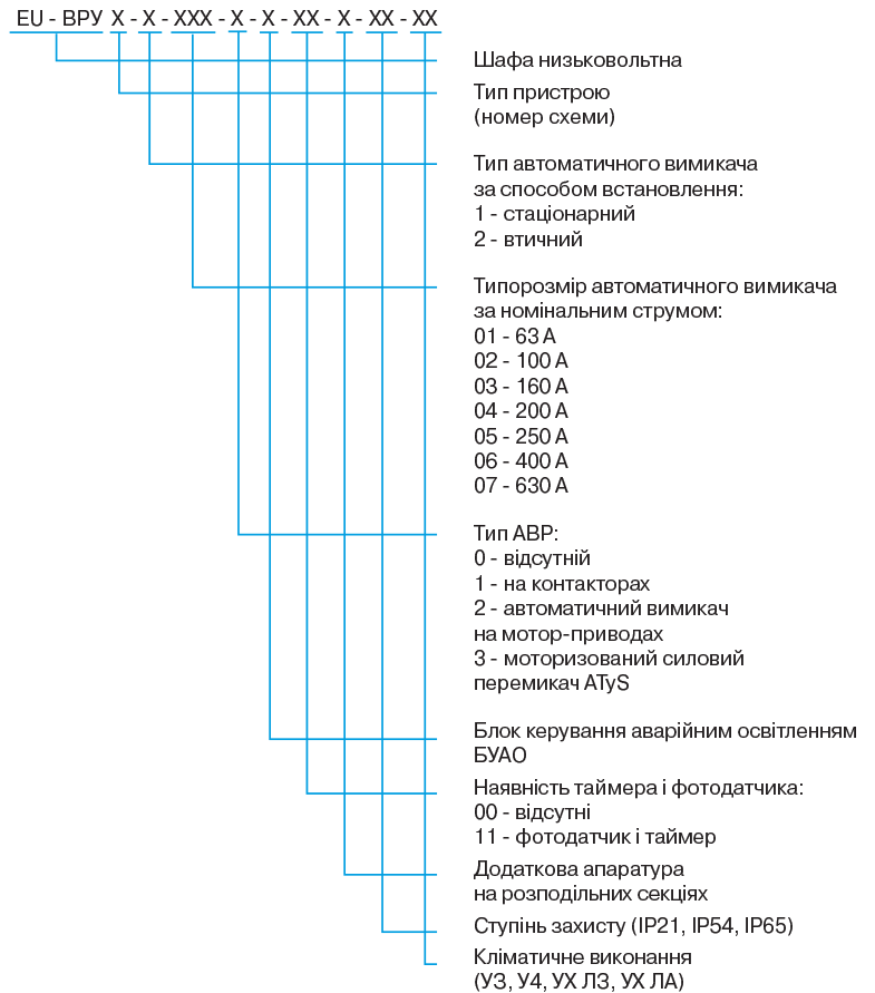 Структура умовного позначення шаф, що входять до складу РУ-0,4 кВ
